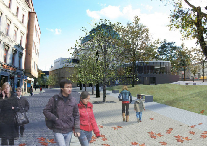 Díky vyčištění okolí divadla a novým parkovým úpravám s jasně vymezenými plochami trávníků a komunikací získala budova divadla včetně přístavby okolí odpovídající své náplni. Architektonicky zpracovaný přehledný parter zve návštěvníky k posezení. Přístavba v moderním duchu s pokladnou umístěnou na svém nároží rovněž napomáhá přístupu potenciálních návštěvníků divadla. V době, kdy se tradiční divadla snaží najít alternativní cesty k získání diváků napříč generacemi, jsou i tyto kroky jednou z cest, jak být lidem blíž.