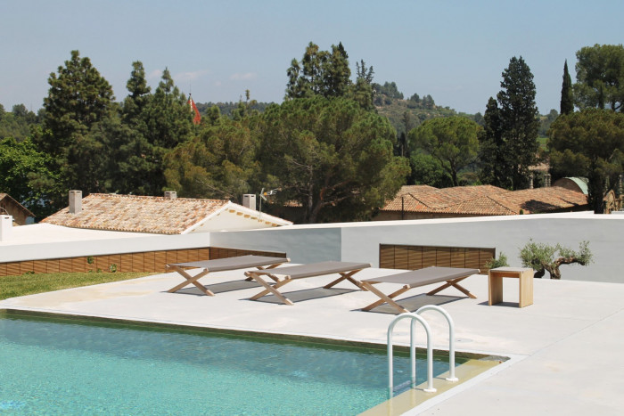 V regióne Penedès, v blízkosti Sant Sadurní d'Anoia, uprostred známeho vinohradníckeho regiónu, v blízkosti ikonickej budovy vinárskych závodov Raventós i Blanc sa nachádza parcela s ďalekými výhľadmi na majestátne pohorie Montserrat. Nájdeme tu jednoduchý dom so sedlovou strechou a bielymi múrmi, ktoré spolu s prístavbou ohraničujú vnútorný priestor ovocných sadov a viníc.