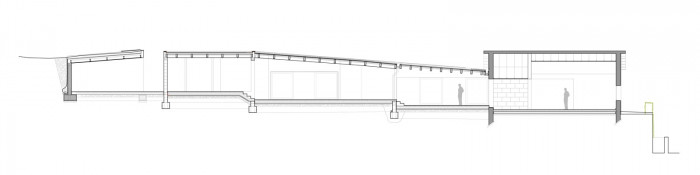 Vnútorné priestory sú veľkoryso nadimenzované. Aj na úrovni dlažby materiálovo plynule prechádzajú z interiéru do krytých exteriérových priestorov, ktoré tvoria filter medzi interiérom a exteriérom.