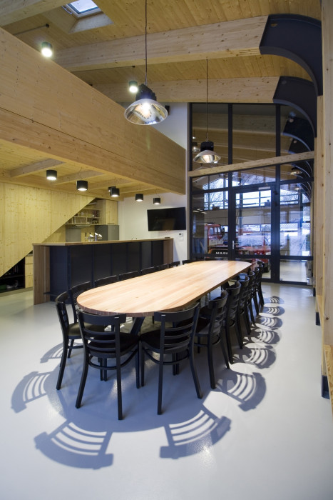 Zbrojnice je dřevěná hala pokrytá titanzinkovým plechem. Podélné stěny jsou plné, štíty maximálně prosklené. Uvnitř je budova rozdělena na garáž a částečně dvojpodlažní část se společenskou místnost se šatnou a hygienickým zázemím, klubovnou mládeže a velitelnou. Garáž je otevřena do ulice, společenská část do zahrady. Obě části budovy lze propojit a pro neformální akce garáž využít jako společenský sál.
