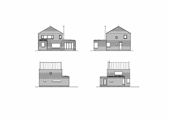 Fasáda je zaklopena modřínovým obkladem, dřevěné okenní rámy mají výraznou žlutou barvu, střecha a oplechování je z titanzinku. Dům jsme kvůli skalnatému podloží posadili na patky.
