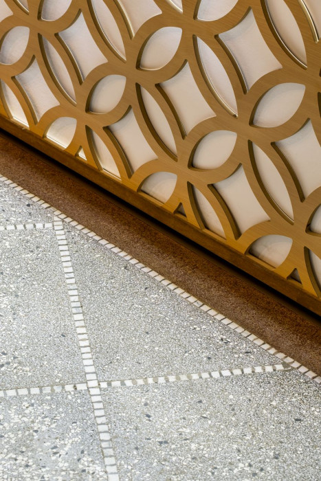 Jednotka byla přebrána ve stavu shell/core, s ponecháním části původní podlahy terrazzo, která je památkově chráněná.