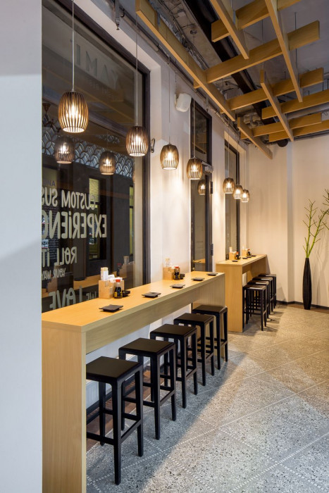 Zadání bylo na restauraci v japonsko-korejském stylu, servírovaní rolek, které si zákazníci mohou sami sestavit. Jídlo se částečně připravuje před zákazníkem na otevřeném baru.