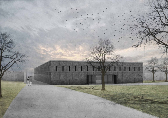 Dům svým výrazem vyjadřuje uzavření od okolního světa a ve svém uzavření vytváří svět vlastní, který žije svým životem. Tato úvaha je v projektu vyjádřena mohutnou, na pohled nepropustnou fasádou z černých plechových panelů, která je schránkou pro vnitřní život věznice samotné. Ta je koncipována do několika tematických bloků s rozdílnými funkcemi, které v rozestupech mezi sebou vytvářejí velké travnaté dvory se stromy. Ke každému bloku tak náleží jeden vlastní dvůr. Jednotlivé bloky jsou pak propojeny z každé strany hlavními chodbami, kde jedna slouží pro zaměstnance a druhá pro vězně. Z venku kompaktní a uzavřený objekt je tak ve skutečnosti uvnitř otevřený, dynamický, prostorný a světlý.