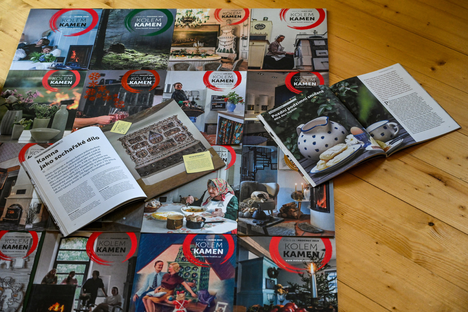 Kolem kamen je čtvrtletník věnovaný kamnářskému řemeslu, jeho tradici i současné podobě. Přibližuje svět kamen, vytápění, keramiky a dalších oborů, které jsou spojené s ohněm, teplem a poctivou řemeslnou prací. Časopis vydává Spolek na obnovu tradičních řemesel a letos vyšlo už jeho padesáté číslo.