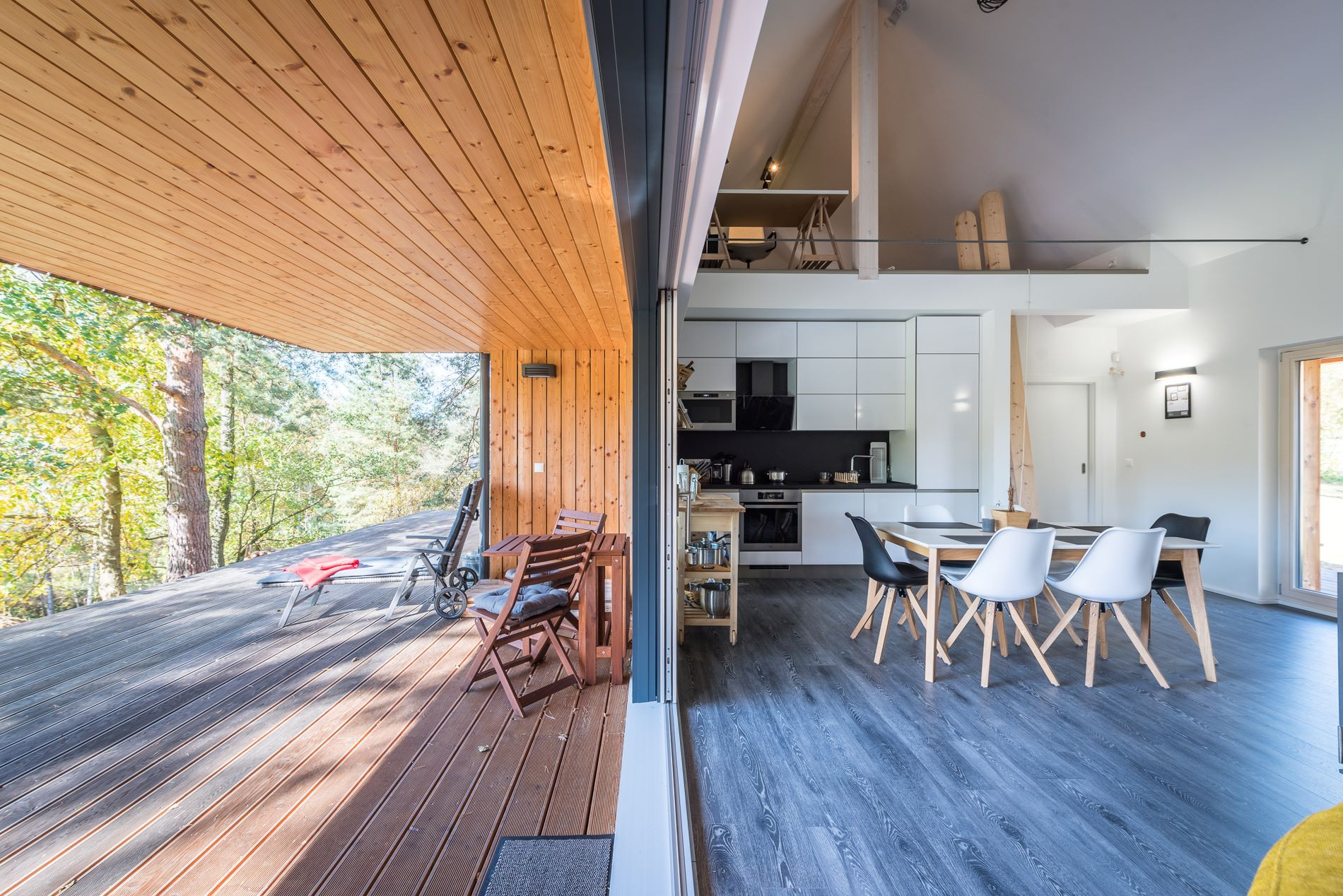 Důležitou součástí návrhu byla také rychlost výstavby. Díky prefabrikovaným dílům z výroby byla hrubá stavba dokončena za tři dny a celý dům během šesti týdnů. Precizní příprava a koordinace všech prací zajistily dodržení časového harmonogramu i vysoké kvality provedení. Výsledkem je moderní dřevostavba, která propojuje promyšlený design s úctou k místu a přirozenému způsobu života.