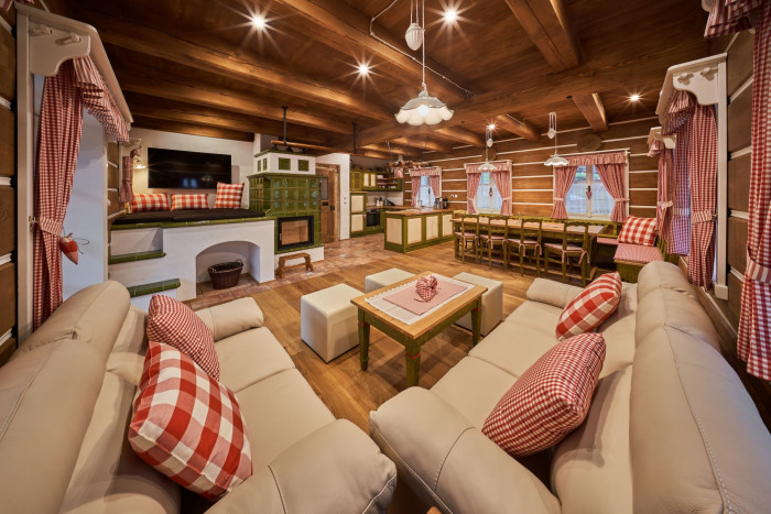 Do interiéru roubenek je možné zahrnout i moderní místnosti – saunu, relaxační zónu, posilovnu, vinný sklípek.