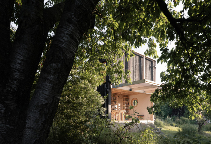 Chata u vinice a řeky s letním kinem a saunou. Esence současného víkendového chataření