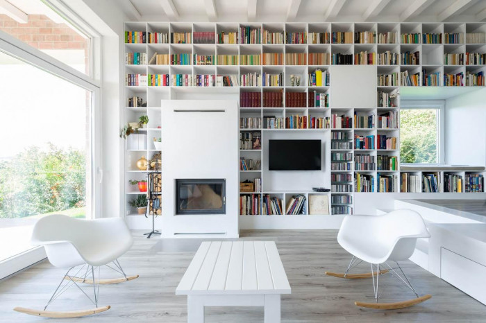 Vila zasazená do svahu v Podolí si pohrává s cihlovou mozaikou