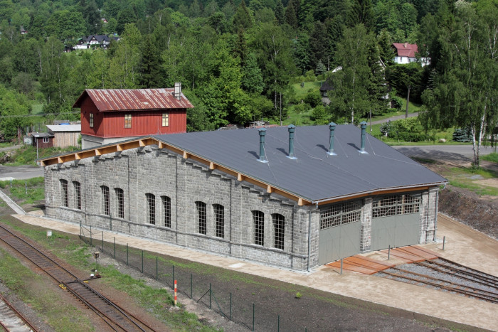 Chátrající torzo památkově chráněné výtopny lokomotiv v Kořenově prošlo kompletní obnovou podle studia Alej