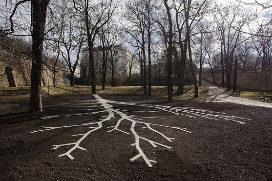 Stín stromu připomínající setkání na podporu Charty 77