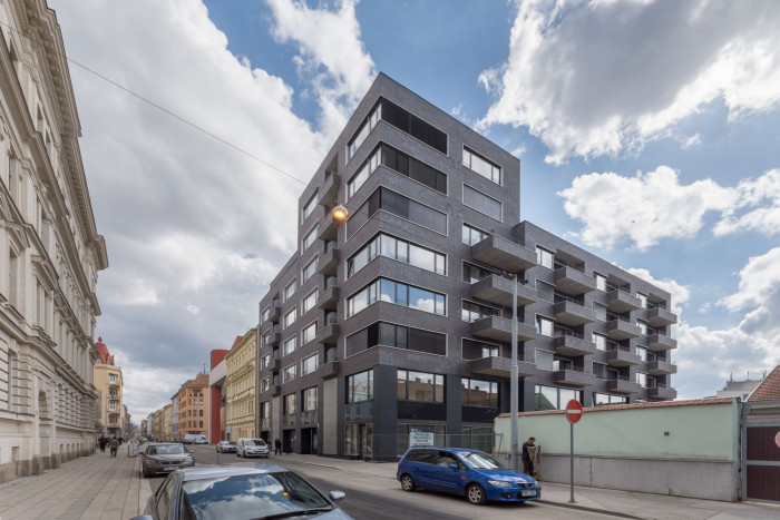 Továrna na bydlení v Karlíně. Má výhled na zelený Vítkov a 48 bytů s lodžiemi