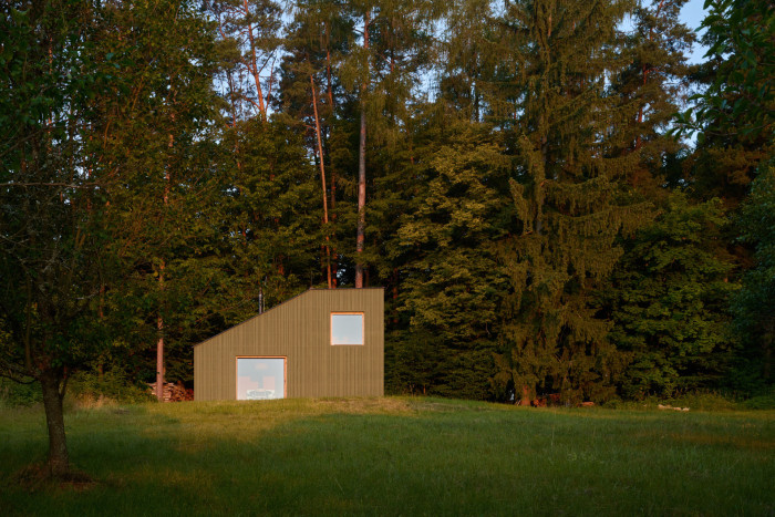 Rekreační domek v Plzni pracuje s přiznanými surovými materiály
