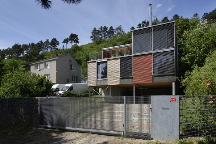 Dvojice Schaufler-Roskovec umístila rodinný dům za Prahou na úpatí prudkého svahu