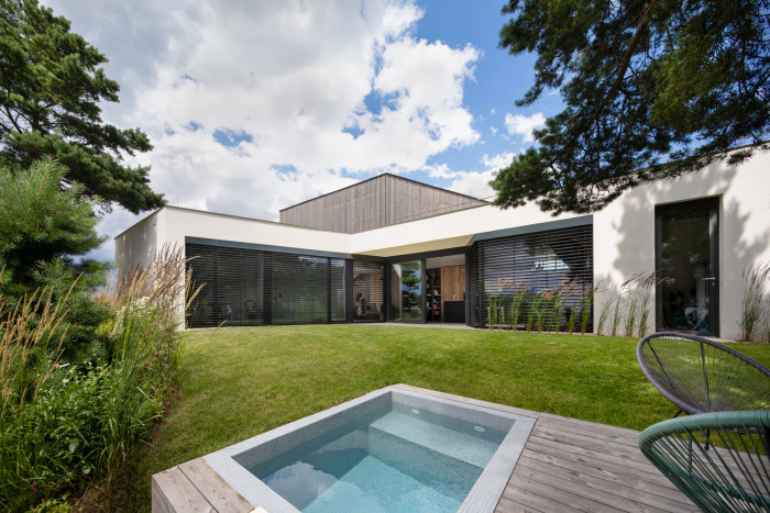 Rodinný dům od studia DOOOM rámuje zahrada se vzrostlými borovicemi