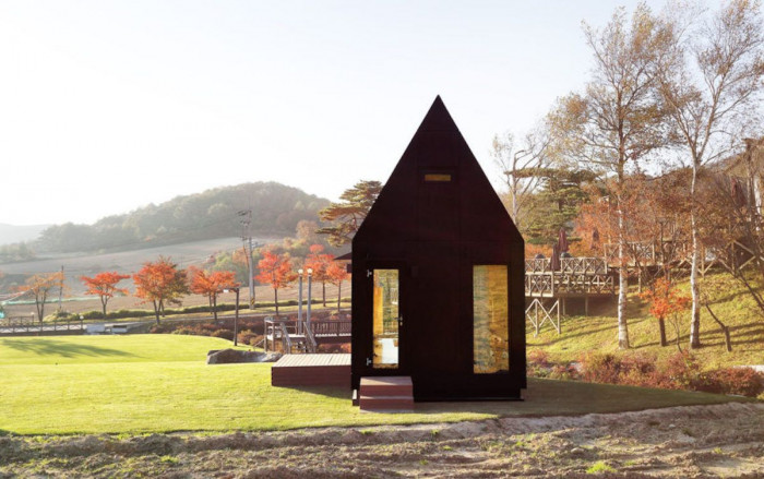 Stěny z recyklovaných oken otevírají malou úspornou chatu v pražské zahrádkářské kolonii
