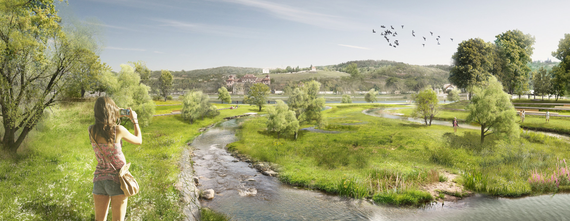 „Projekt přinese úpravy břehů, které budou v části od Trojské lávky k zámku přístupnější. Vzniknou zde nová schodiště, terasy i pěšiny. Zdejší přírodní peřeje, v Praze jedinečné, tak budou k vidění i zblízka. Parkoviště před zámkem se promění v příjemný prostor pro lidi a vstup do zámecké galerie,“ představuje Petr Hlaváček, I. náměstek primátora pro oblast územního rozvoje a územního plánu. Právě předpolí Trojského zámku prošlo v minulých dnech již první provizorní úpravou.