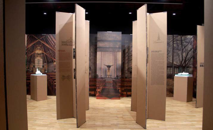 Raymondovy realizace na Filipínách, a zejména v Japonsku byly představeny na fotografiích, videu, plánech a modelech. Spektakulární instalaci doplňovaly též plány, kresby, artefakty a mobiliáře z interiérů Raymondových staveb podle návrhů obou manželů i architekta Bedřicha Feuersteina. O současné podobě a měřítku realizací si mohou návštěvníci udělat představu díky projekci několika dílů seriálu Šumné stopy Antonína Raymonda, Bedřicha Feuersteina, Jana Josefa Švagra a Raymondových následovníků.