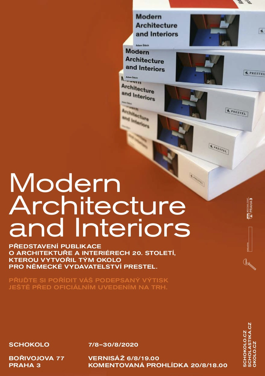 15 let cestování za architekturou 20. století po celém světě se stalo základem knihy Modern Architecture and Interiors, kterou Adam Štěch vydává u německého nakladatelství Prestel. S grafickou úpravou Matěje Činčery a Jana Klosse je publikace další z komplexních projektů skupiny OKOLO. Na 900 stranách představuje autor rozmanité příklady moderní architektury z téměř 30 zemí světa, které Adam Štěch sám navštívil a zdokumetoval. Slovníkový formát knihy představuje stovky slavných i méně známých tvůrců a jejich svébytná díla dokumentující rozmanitost architektury a interiérového designu minulého století od secese, kubismu a expresionismu přes funkcionalismus, organickou architekturu až po brutalismus, high-tech a další experimenty poválečné éry.