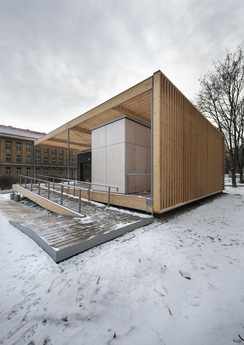 - autor: Tým ČVUT, koordinátor týmu: Dalibor Hlaváček, hlavní architekt: Martin Čeněk, statika dřevěných konstrukcí: Pavel Nechanický