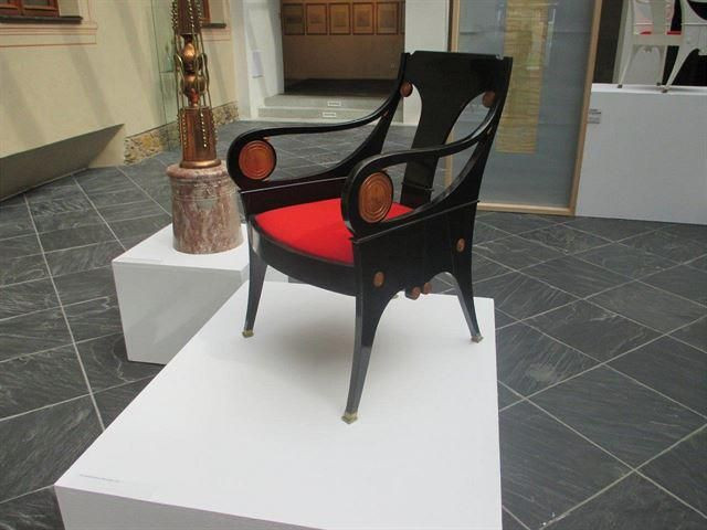 K tématu má samozřejmě velmi blízko – předměty, které vystavuje, ho obklopovaly od nejútlejšího mládí. Jeho dědeček Matko Prelovšek, ředitel městského stavebního úřadu, totiž s Plečnikem spolupracoval na úpravách slovinské metropole Lublaně ve dvacátých a třicátých letech minulého století. Architekt se mu odvděčil projektem kuriózního domu Peglezen, tedy Žehlička (mimochodem, kopie vlajkového stožáru Peglezenu stojí od roku 1996 na Opyši u východní brány Pražského hradu), ale zejména návrhem interiérů jeho staršího rodinného domu v Zarnikově ulici. Práce probíhaly paralelně s Plečnikovými hradními intervencemi, a tak si architekt mohl vyzkoušet různé prvky, které pak použil i v interiérech pražského Masarykova bytu na Hradě nebo naopak – většinou na přání paní Prelovšekové – vytvořit variaci na hradní téma. To byl třeba případ Výšivkového salonku, navrženého původně pro Alici Masarykovou, ale vyvedeného v téměř totožných formách i v Prelovšekově apartmá. A protože pražský originál zlikvidovali komunisti, měli jsme při přípravě Plečnikovy výstavy, konané na Hradě v roce 1996, možnost nastudovat detaily a provedení ve slovinské verzi, když jsme sestavovali fragment salonku (originální lidové výšivky z Aliciny sbírky se naštěstí zachovaly v Národopisném muzeu). Výšivkový salonek na současné výstavě v kapli Jiřského kláštera sice neuvidíte, ale zato budete moci obdivovat neméně slavné křeslo Prelovšek, jeden z nejkrásnějších prvků nábytku, který znám. Dále je tu k vidění měděný svícen, další kusy mobiliáře i kuriózní sbírka ozdobných zátek na lahve od vína, jež jsou inspirovány miniaturními gotickými relikviáři ze svatovítského pokladu. A samozřejmě sérii originálních Plečnikových výkresů provedených tužkou nebo tuší na pauzovací papír.
