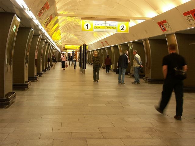 Jeho nápadem bylo obložit většinu stanic na „áčku“ eloxovanými plechovými deskami s kruhovými prolisy, připomínajícími čočky. Je to krásný motiv těžící z poetiky op-artu a přiznám se, že během čekání na vlak často pozoruji světelnou hru na vypuklých tvarech. Najdeme je na všech stanicích od Dejvické po Želivského, ale liší se barvou, což byl výborný nápad. Kdo jezdí pražským metrem častěji, zvykl si na ten kód dokonale a hned po vjezdu do stanice ví, kde se nalézá, prostě červená je Staroměstská, žlutá Můstek, zelená Malostranská, fialová Flora a tak dále. Jen na bývalé konečné v Dejvicích jsou jednotlivé barvy kombinovány.