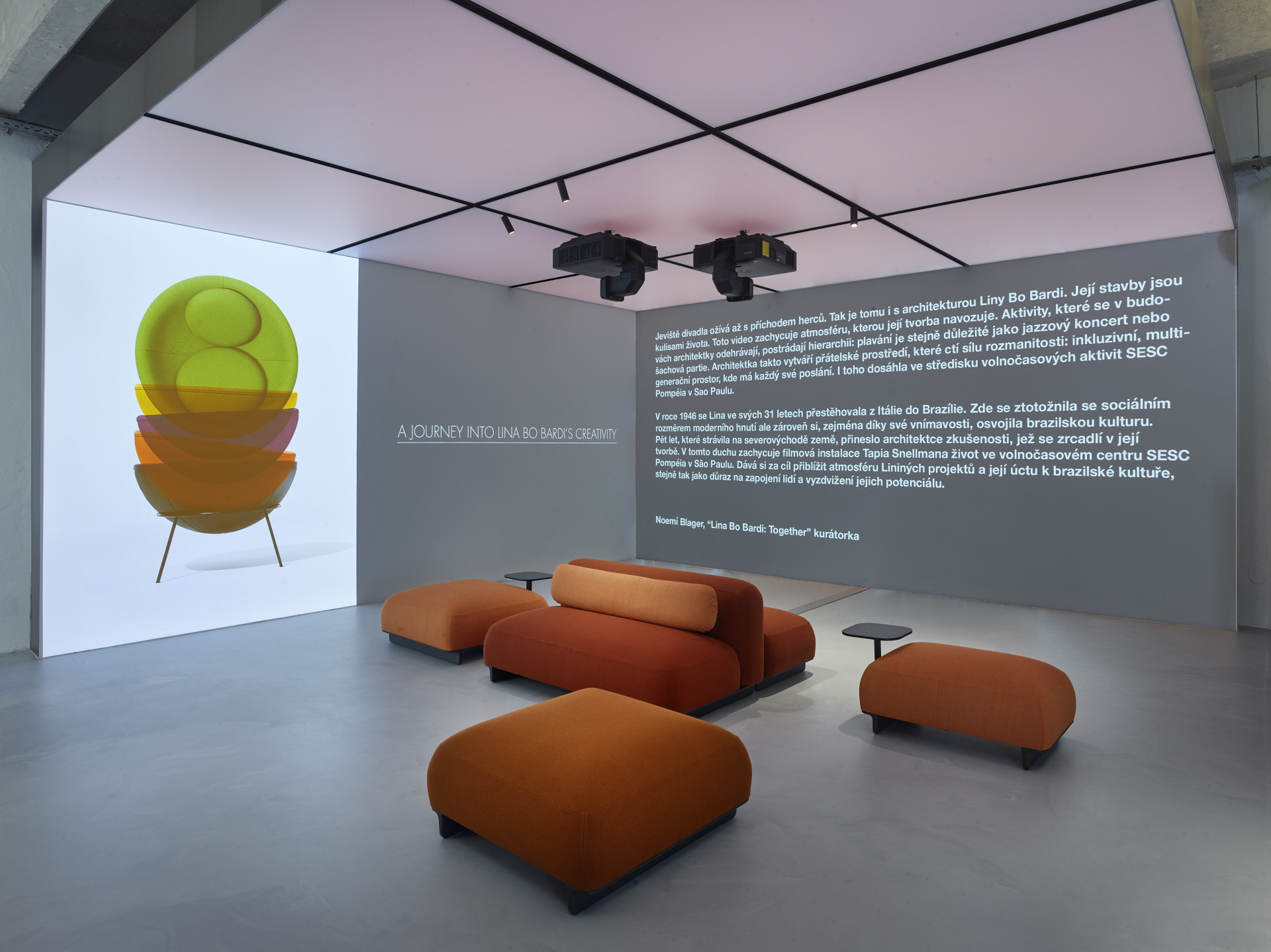 Krátký film z roku 2012 hraje v malé výstavě v Holešovicích, konkrétně v kreativním prostoru pro design a architekturu Konsepti Stage, kde je k vidění do konce října. „V roce 1946 se Lina ve svých 31 letech přestěhovala z Itálie do Brazílie. Zde se ztotožnila se sociálním rozměrem moderního hnutí ale zároveň si, zejména díky své vnímavosti, osvojila brazilskou kulturu. Pět let, které strávila na severovýchodě země, přineslo architektce zkušenosti, jež se zrcadlí v její tvorbě. V tomto duchu zachycuje filmová instalace Tapia Snellmana život ve volnočasovém centru SESC Pompéia v São Paulu. Dává si za cíl přiblížit atmosféru Liiných projektů a její úctu k brazilské kultuře, stejně tak jako důraz na zapojení lidí a vyzdvižení jejich potenciálu,“ píše kurátorka výstavy Noemi Blager.