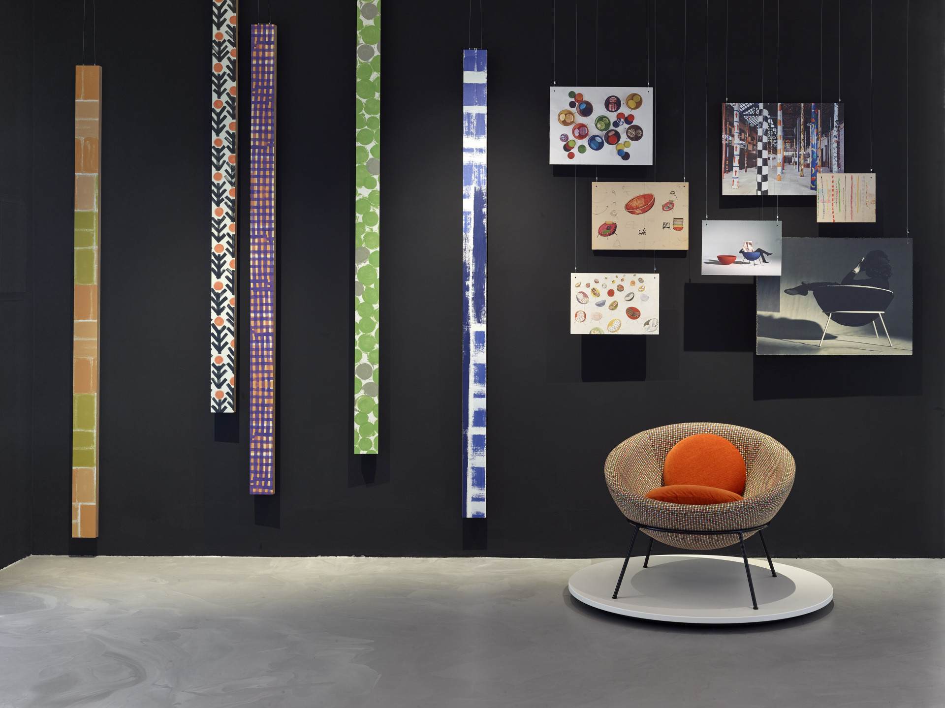 Křeslo není do výstavy umístěno jen tak náhodou, v roce 2013 se totiž dočkalo limitované reedice pod italským výrobcem Arper. Vyrobeno bylo pouze 500 kusů, několik jich je taky v Konsepti – jedno v černé kůži a druhé ve strukturované látce. K vidění jsou zde také další varianty křesla, ať už na dobových fotografiích, skicách nebo ve vzornících, které si můžete prolistovat.