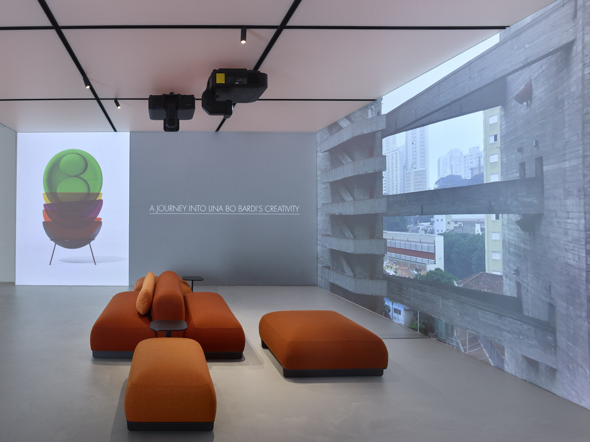 Společně s videospotem jsou zde vystavena křesla Bowl Chair, která Bo Bardi navrhla v roce 1951. Charakteristický je pro ně subtilní rám se čtyřmi nohami, který vynáší část pro sezení ve tvaru duté polokoule. Designované bylo tak, aby si ho každý mohl jednoduchými pohyby přizpůsobit pro své pohodlí – polokouli umístit více do roviny nebo nahnout. Křeslo brzy sklidilo mezinárodní úspěch a podle kurátorky bylo dobově srovnáváno s úspěšnými produkty od Eera Saarinena, Ireny Schwinské nebo Roberta Manga.