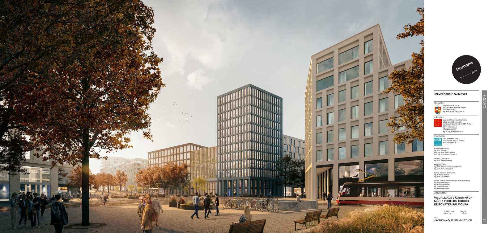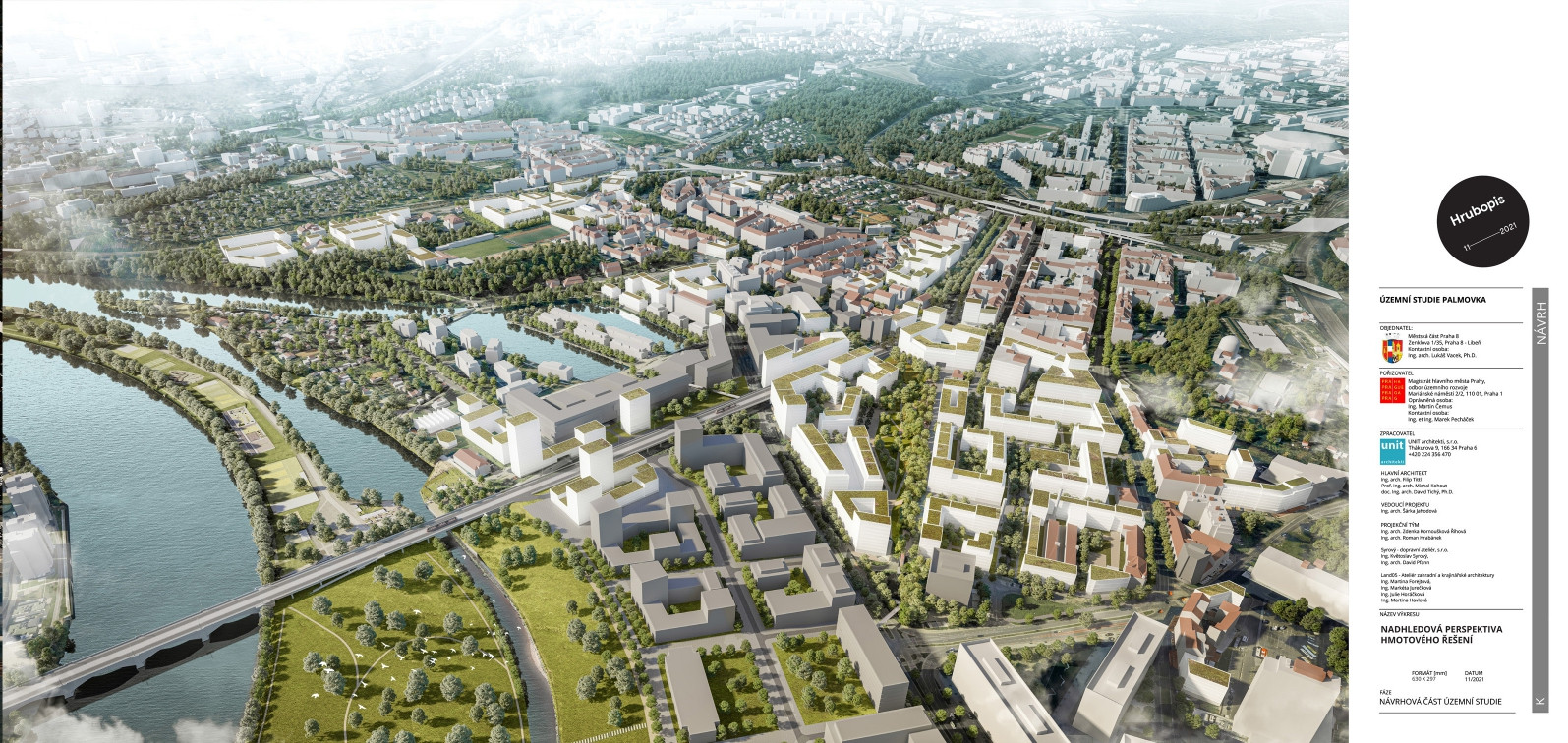 Urbanistická studie zpracovaná studiem Unit architekti chrání stávající hodnoty lokality, zasazuje do ní bytové a administrativní budovy a vytváří mezi nimi atraktivní veřejný prostor. Studie vychází z principů udržitelného rozvoje, kompaktního města krátkých vzdáleností a rozmanitého města plného zeleně.