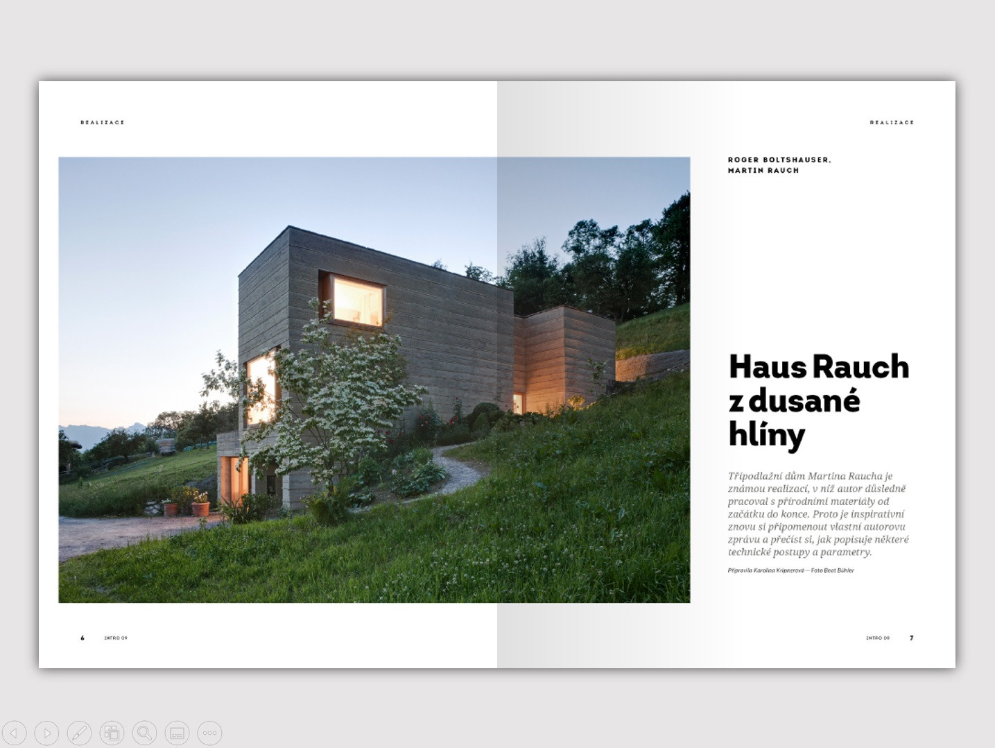 I tentokrát vám INTRO nabídne kvalitní obsah, jehož nepostradatelnou součástí je množství fotografií a detailních nákresů jednotlivých realizací. Těšit se můžete na rozhovor s architektem Petrem Suske, v němž promluví o slaměných domech, biofilii, svíticí posilovně a lapačích větru.