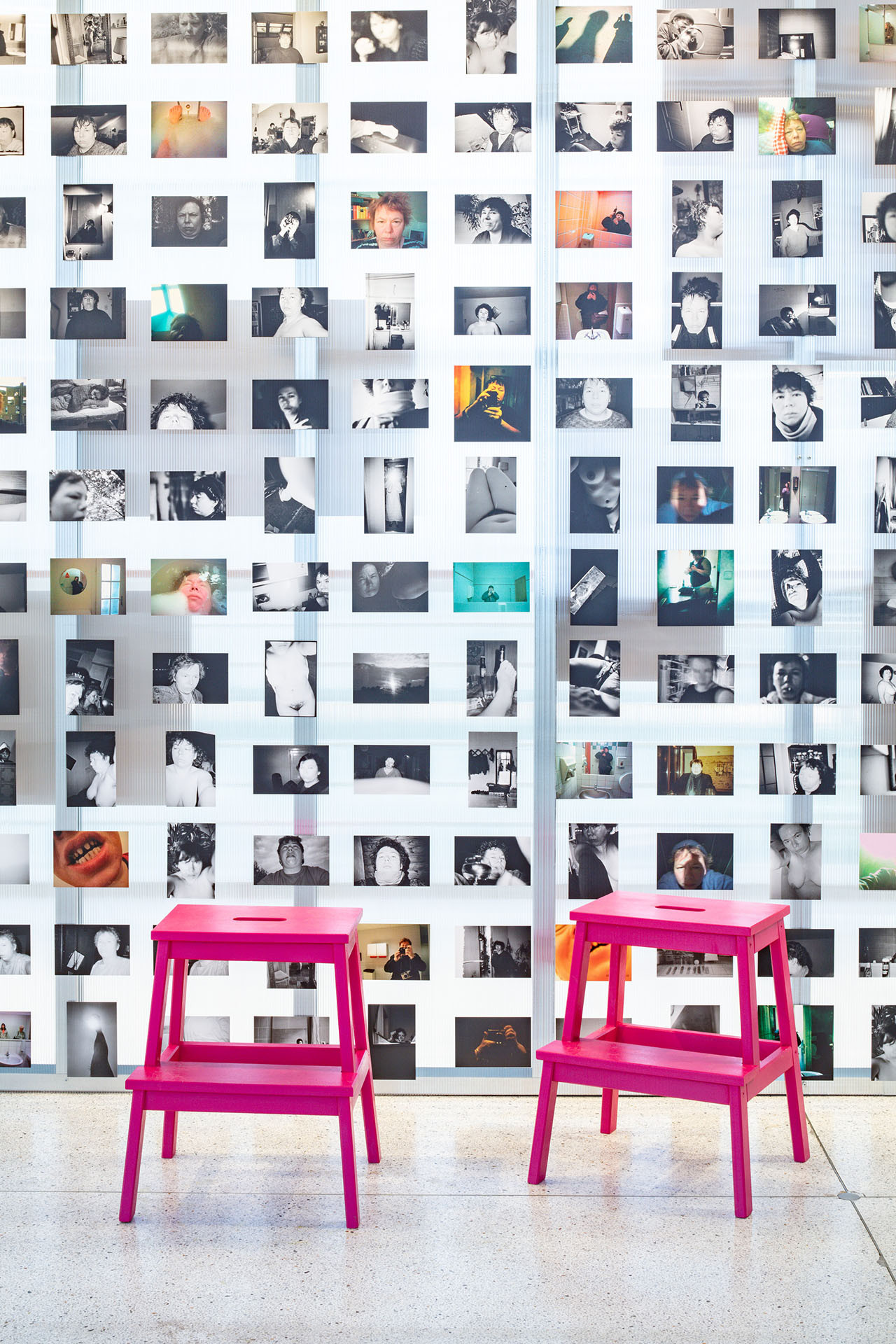 Výstava je retrospektivní, shrnuje tvorbu od 80. let do dneška. Instalace návštěvníka spolehlivě naviguje proudem času a fotografií. Každá etapa a každé téma je instalováno trochu jinak – intimní fotky na surové dřevotřísce, záběry z dalekého Japonska mají jako podklad velkoformátový tisk nebe. Některé fotografie se vznáší ve vzduchu. Jiné jsou zvětšené a stává se z nich dekor na sedacím mobiliáři.
