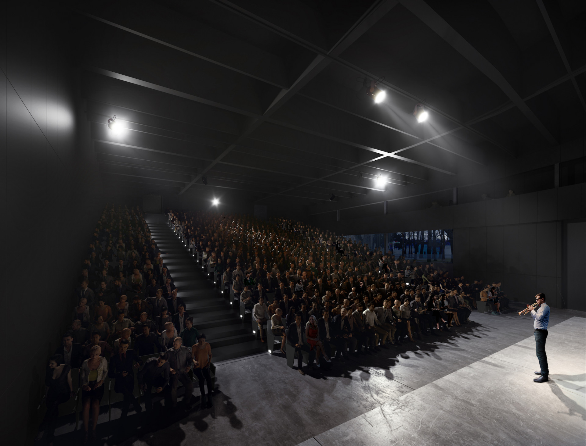 Největší předností návrhu je celková vzdušnost a střídmost. Nové uspořádání rozděluje prostor na uzavřenou pravou část a velkorysou levou, pojatou maximálně volně a vzdušně, pouze s předěleným systémem závěsů. Veškeré potřebné technologie a zázemí jsou zakomponovány do jednoho modulu tak, aby zbytek prostoru mohl dýchat. Ubrána je barevnost i materiálové spektrum. Jednoznačně vyniká čistota nové formy. Výrazový minimalismus podtrhuje i exteriérová copilitová prosklená stěna.