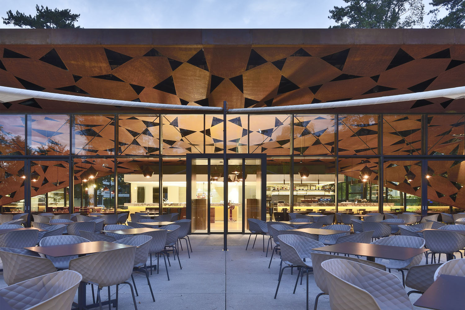 Betonová hmota nedaleko biskupského paláce má prosklený parter a díky tomu zdálky působí, jakoby levitovala nad zemí. Až budete mít dost, zajděte si odpočinout do bistra Brix 0.1. Moderní pavilon v parku Legatto od studia Markuse Taubera má cortenovou střechu v podobě spadaného listí a vyhlíží na vodní plochu.