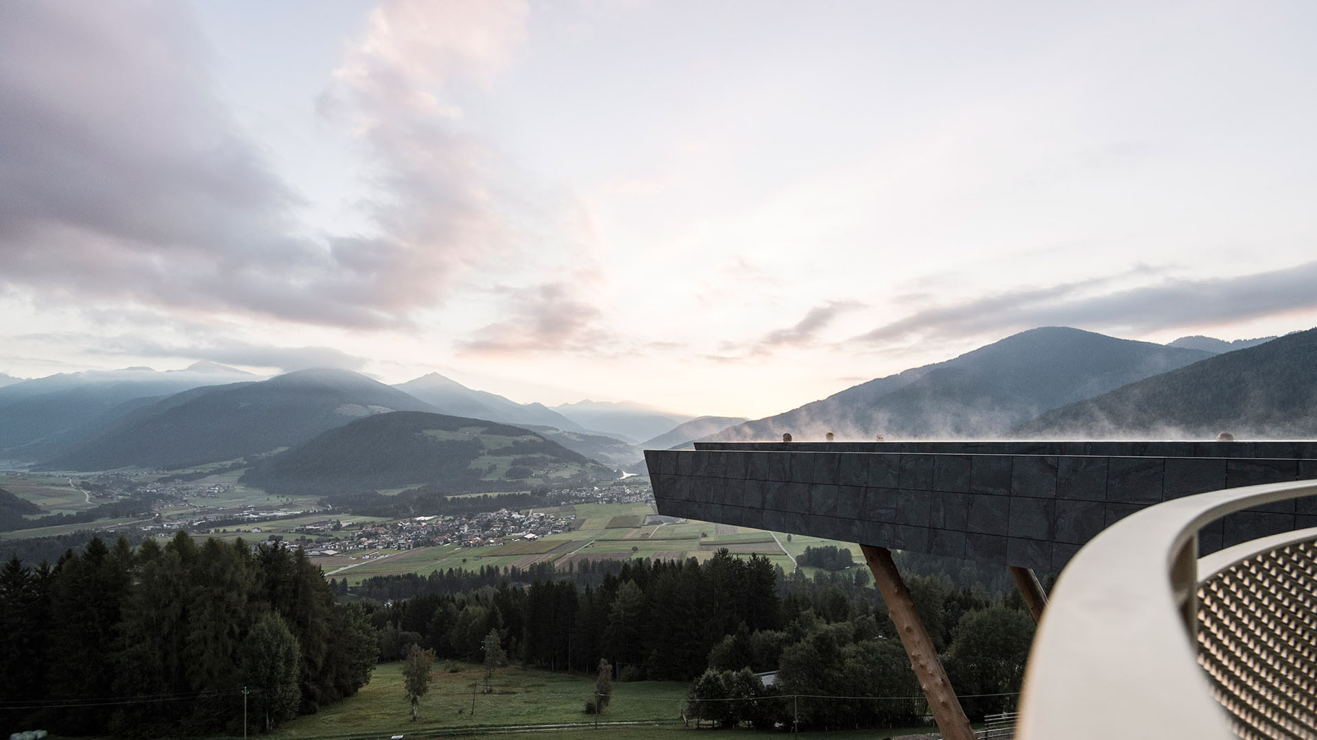 Pichlerův rukopis najdete i ve městě Castelrotto, které leží na půli cesty z Brixenu do Bolzana. Architekt v něm dostal za úkol proměnit dosluhující alpskou architekturou na luxusní chrám jídla a ubytování. Hotel Schgaguler má moderní estetiku odkazující na archetypální tvar domů se zkosenými střechami. K luxusním nemovitostem v regionu se řadí také hotel Hubertus s visutým bazénem nad údolí města Olang. Ateliér NOA ho obalil do kmenů stromů a vytvořil tak zajímavou podívanou, která stírá hranice mezi tím, co vytvořil člověk a co příroda.
