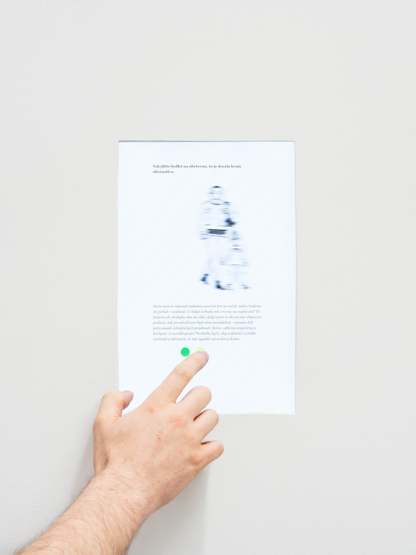 Pátá, závěrečná část výstavy nabízí dvě cesty: kam to povede, pokud si nadále budeme namlouvat, že krize bydlení a bezdomovectví nejsou náš problém, a kam to povede, pokud přijmeme, že je to i náš problém a podnítíme tak společenskou diskusi a akci vedoucí ke změně.