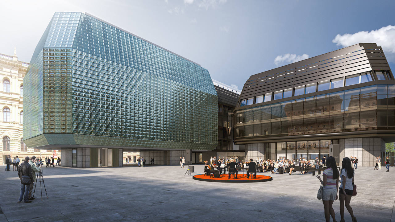 Co se týče nových vstupů do budovy: líbí se mi propojení piazetty s budovou díky zvedacím skleněným stěnám a možnost průchodu do Voršilské zahrady. Mám pochybnosti o řešení třetího podlaží, kde je teď kavárna. Původní plán byl, že Nová scéna a sousední tzv. Restaurační budova se propojí a ve třetím podlaží vznikne jakési veřejné návštěvnické patro s centrálním barem. Teď je ale v tomto patře umístěná zkušebna a návštěvnické služby, jako třeba ateliér pro vzdělávací programy, jsou až v nejvyšším podlaží. Nevím, jestli to je optimální.
