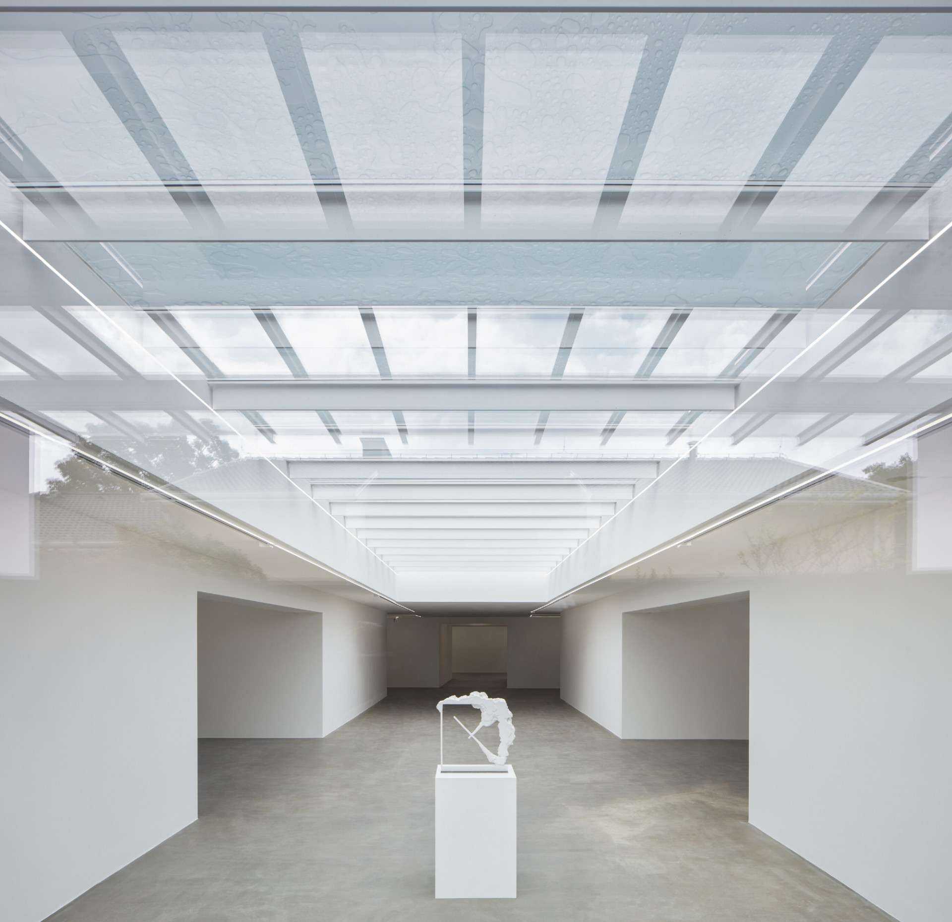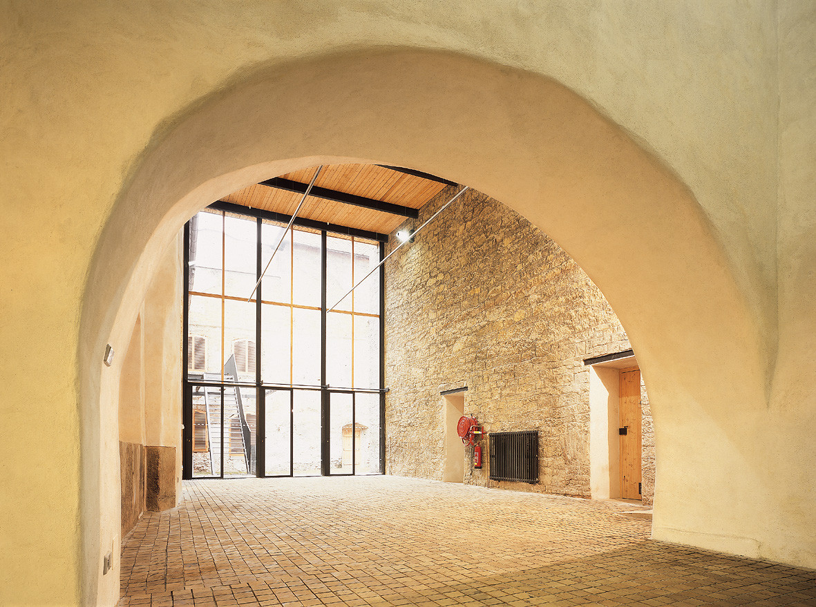 Vnitřní klid v budově byl jedním ze zásadních požadavků, proto je celá struktura zasazena do země: ruch blízké komunikace se tak uvnitř úplně ztrácí.