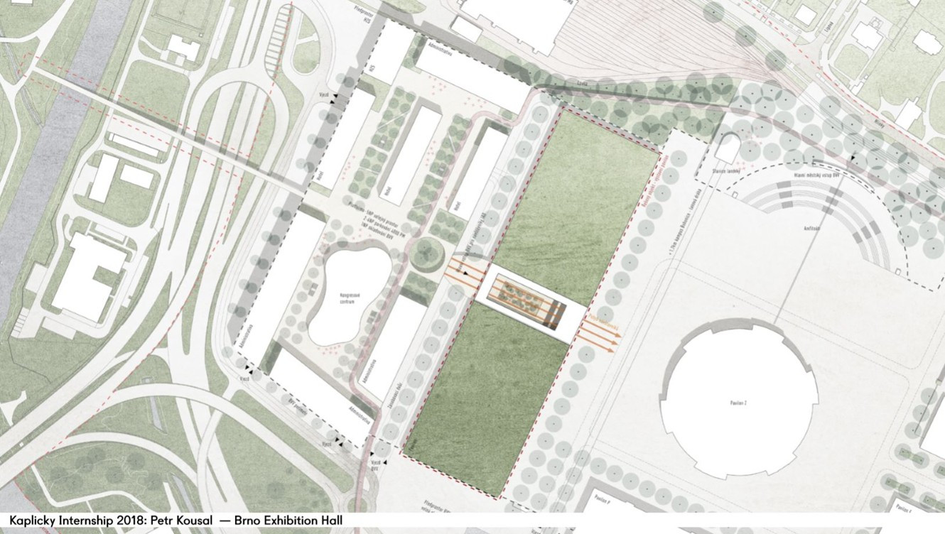 Tento projekt si mladý architekt vybral, protože se již během studií zabýval urbanismem celého výstaviště. Ve svém diplomovém projektu se pak zaměřil na návrh rozsáhlého pavilonu, který je soustředěn do západní části výstaviště v blízkosti pavilonu Z. Vstup do budovy se nachází uprostřed pavilonu, čímž stavbu rozděluje na dvě samostatné výstavní haly, v nichž mohou paralelně probíhat různé události kulturního, společenského, vzdělávacího či sportovního charakteru. Haly jsou zároveň propojeny vyvýšeným atriem se zelení, odkud je možné projít do odpočinkové zóny s restaurací. Cílem projektu bylo více zpřístupnit výstaviště veřejnosti, která by jej mohla využívat nejen za účelem návštěvy veletrhů.