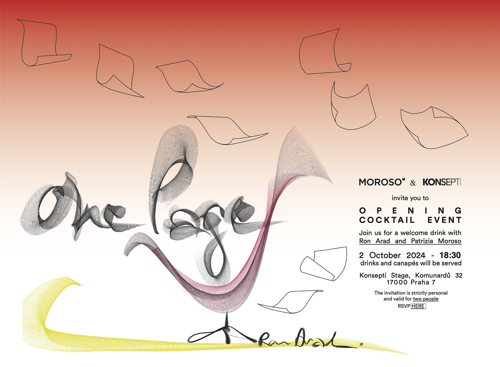 vzhledem kombinuje funkčnost s uměleckým pojetím, který je pro značku typický. „Jsme nadšeni, že právě křeslo Rona Arada One Page, které bylo poprvé představeno veřejnosti na letošním Salone del Mobile, bude součástí expozice v našem showroomu. O to víc, když s ním přijede i samotný autor a ředitelka firmy. Je to pro nás velká čest, radost a motivace,” uzavírá Řezníček.
