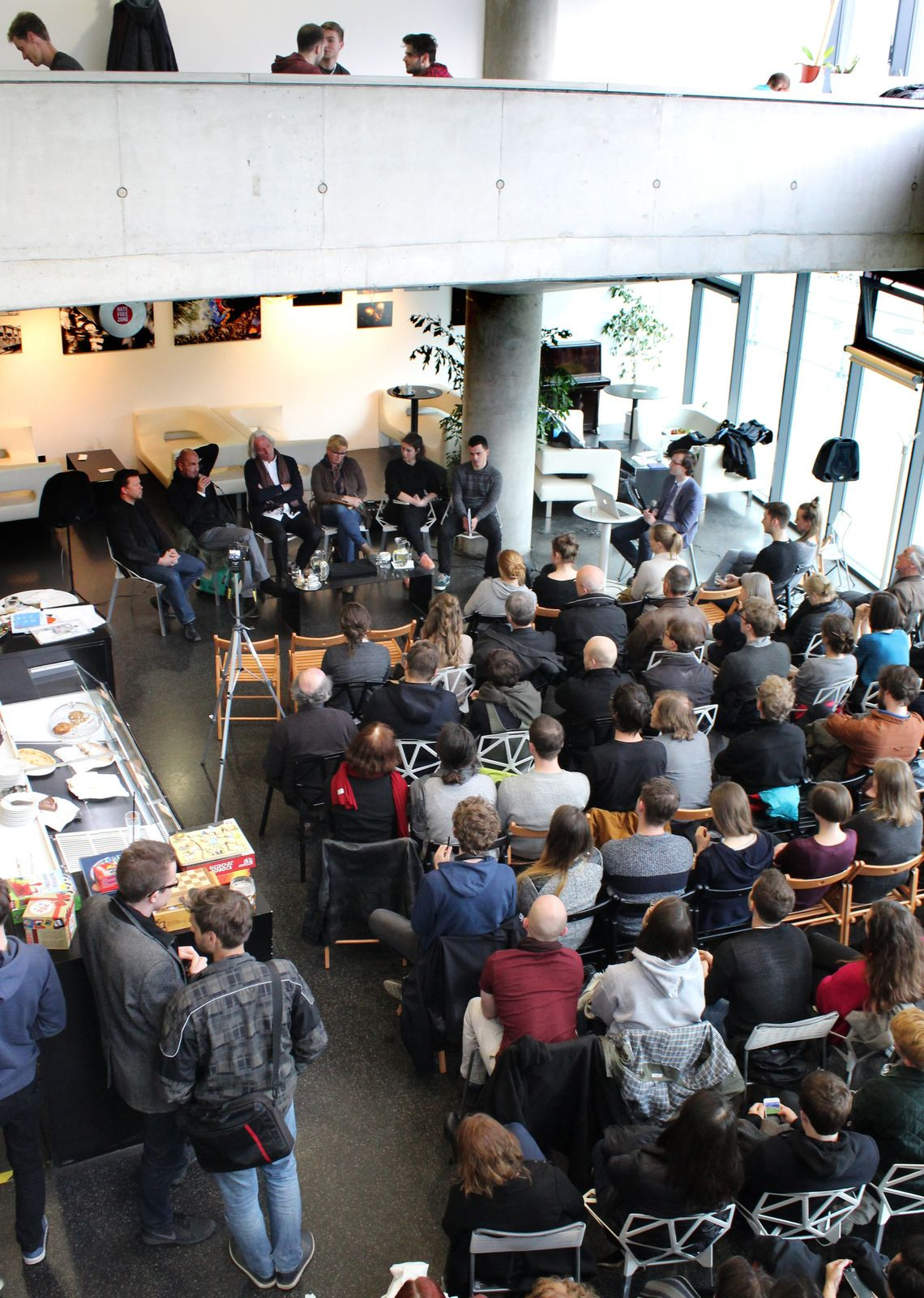 Za této situace byli k diskuzi přizváni za vedení školy děkan Ladislav Lábus a děkanka pro pedagogickou činnost Irena Šestáková, za vyučující to byli vedoucí ateliérů Michal Kuzemenský a Boris Redčenkov a ze studentských řad byl vybrán senátor akademického senátu a student bakalářského studia Ondřej Lebeda a studentka magisterského studia Alžběta Widholmová. Celý večer moderoval absolvent FA a momentálně pracovník IPR Praha Lukáš Makovský. Kavárna se zaplnila studenty a profesory do posleního místa.