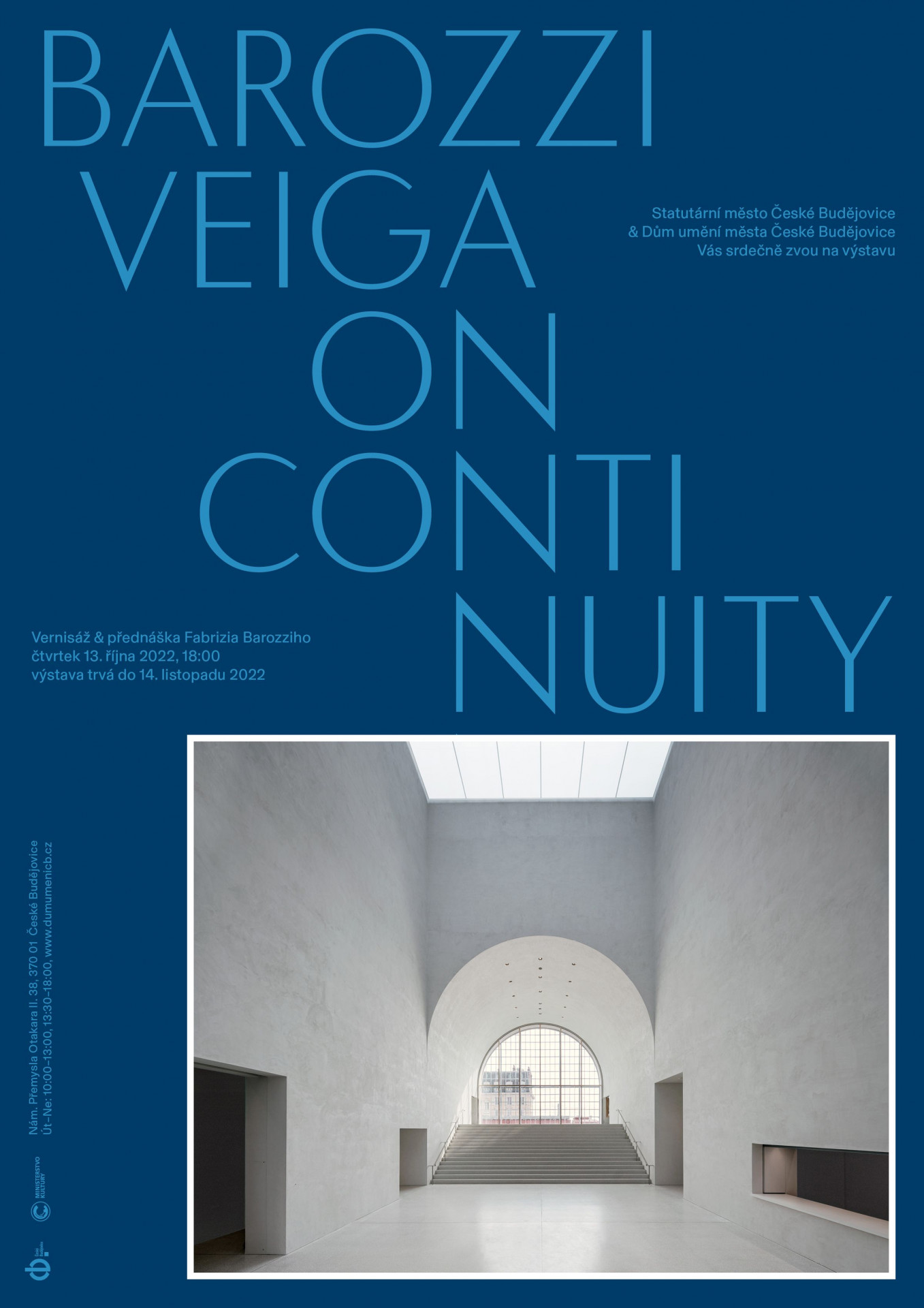 První monografická výstava Barozzi Veiga v České republice skrývající se pod názvem O kontinuitě představuje sérii dokončených nebo právě realizovaných projektů. Výstava poukazuje na základní témata, která charakterizují práci této firmy prostřednictvím vyprávění – pomocí kreseb, fotografií a modelů – o koncepční části a stavební realitě každého projektu.
