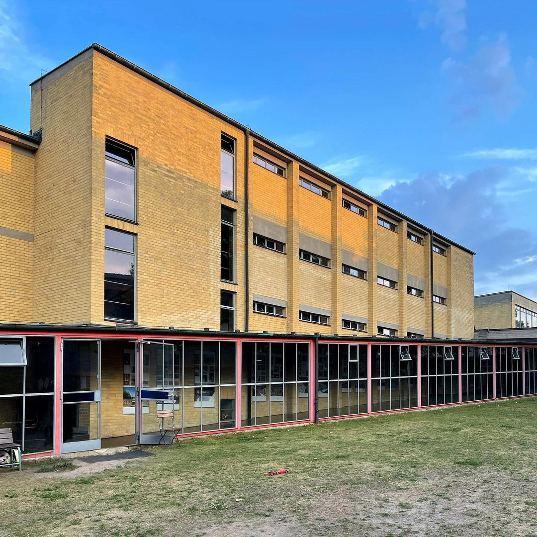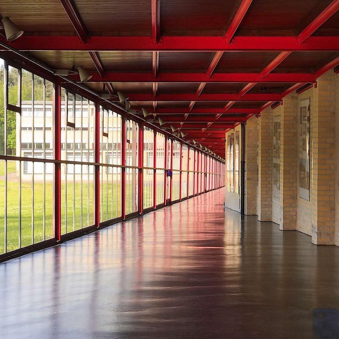 Projekt byl koncipován podle analýz vycházejících z daného území – mírně svažitého pozemku a potřeb školy. Je komponován do několika budov studentských kolejí, které jsou spojeny rozlehlou otevřenou a celoprosklenou chodbou s výhledem do krajiny, ústící do centrální budovy s třídami a společenskou menzou. Stavba byla roku 2017 společně se školními areály ve Výmaru a Desavě zapsána na seznam světového dědictví UNESCO.