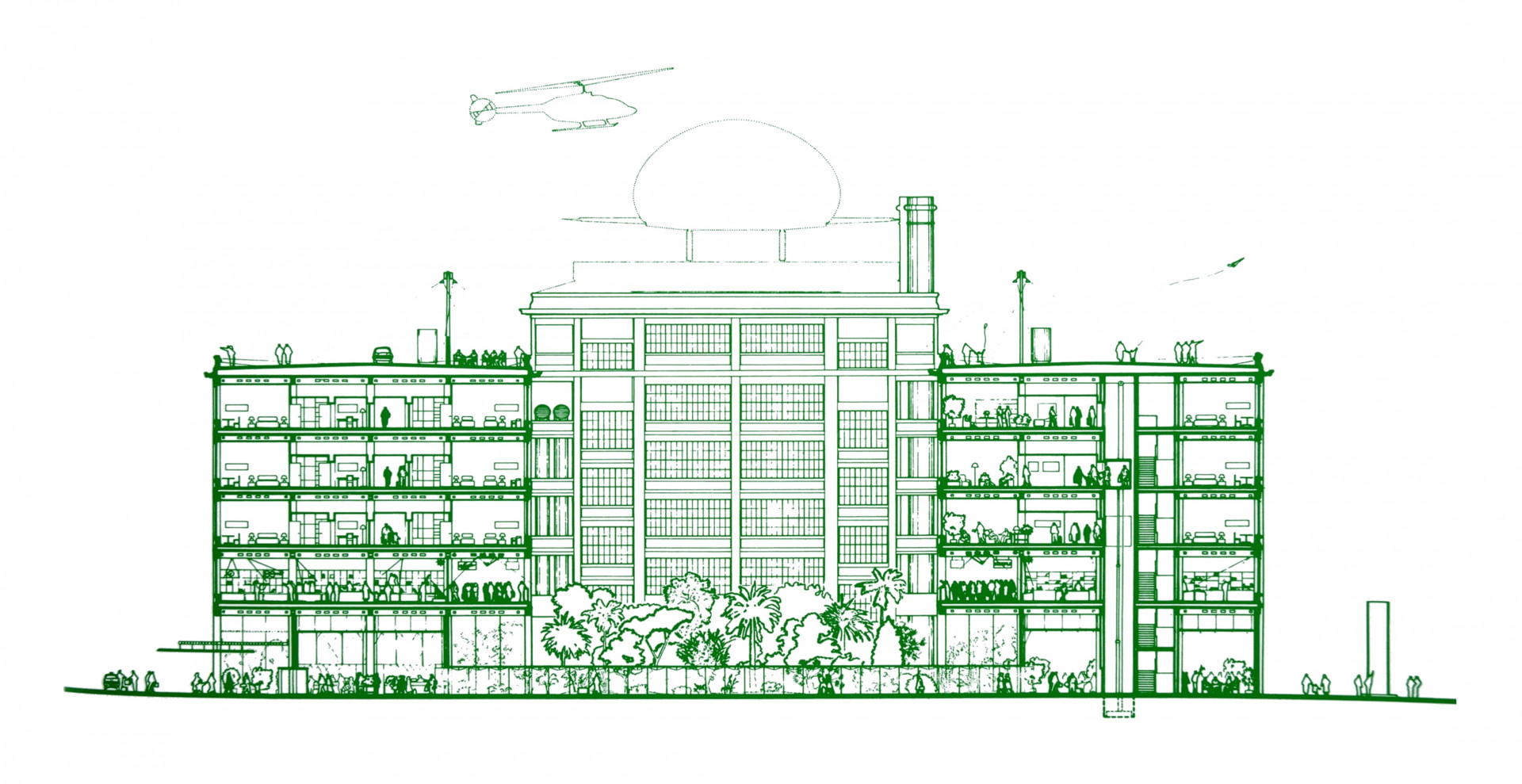 Exteriér budovy zůstal z velké části nezměněn, zato interiér prošel výraznou proměnou. Železobetonový skelet složený z modulárních jednotek 6x6 metrů je ovšem v budově patrný dodnes. Uvnitř zůstala i ohromná točitá rampa, která sloužila k transportu automobilů na testovací dráhu na střeše továrny.