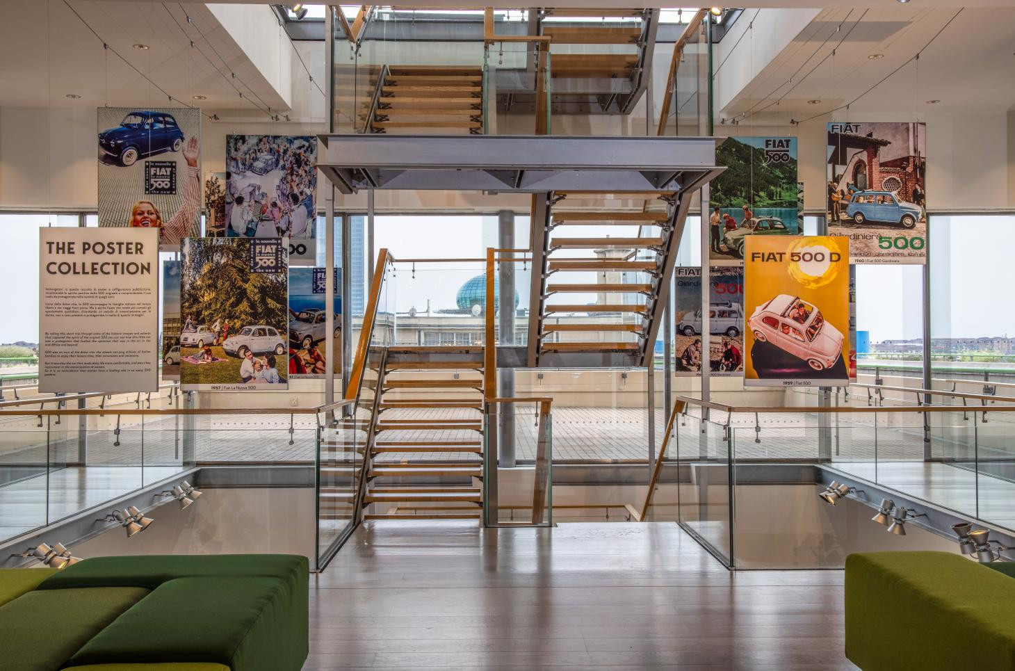 „Šperkovnice“, která se nad továrnou doslova vznáší, má vše, čím se high-tech architektura vyznačuje. Na její ocelovou konstrukci nasedá skleněná střecha se clonou z kovových lamel, které dokážou automaticky regulovat intenzitu světla v galerii tak, aby byla díla nasvícena vždy ideálními 250 luxy. Přísně, zároveň však velmi lehce působící strukturu si nejlépe vychutnáte, když vystoupáte až na bývalou testovací dráhu. Ta prošla roku 2021 velkou úpravou a dnes se na ní nachází největší střešní zahrada v Evropě. Díky programu Pinakotéky Agnelli a možnému vyolnočasovémů využití nejen střechy, ale celé budovy je v bývalé továrně neustále přítomný kontakt historického a soudobého.