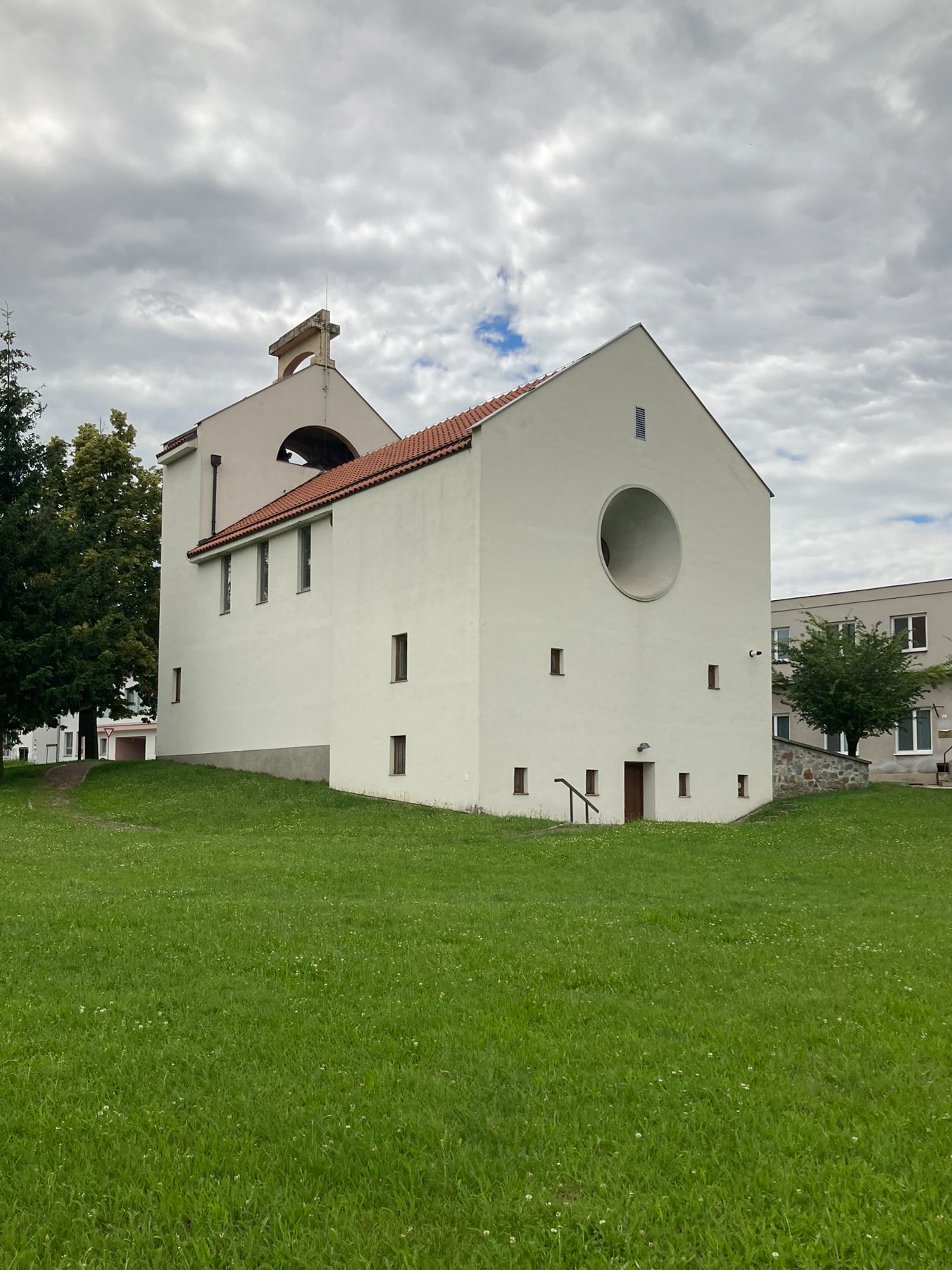 Domů to máme ještě daleko, a tak pomalu zvedáme kotvy. Pokud ještě vinařské kultury nemáte dost, stavte se po cestě v současně-venkovském vinném sklepě a přidruženém penzionu v Konicích od Tomáše Dvořáka. Raději si ale návštěvu domluvte předem, jinak se může stát, že vám nikdo neotevře... Tenhle neúspěch jedeme tedy ještě vyvážit obhlídkou kostela Sv. Ducha od Marka Štěpána (na Moravě jich má několik a všechny stojí za návštěvu). Stojí uprostřed poměrně neutěšené vesnické návsi a architektonicky je poměrně strohý, navržený dle striktních geometrických pravidel. Nejvíce nás baví kruhové okno nad presbytářem, rozšiřující se kónicky směrem ven, a prostorově pojednaný kříž na vrcholu věže. Zvedá se vítr a začíná pršet, prcháme tedy ku Praze...