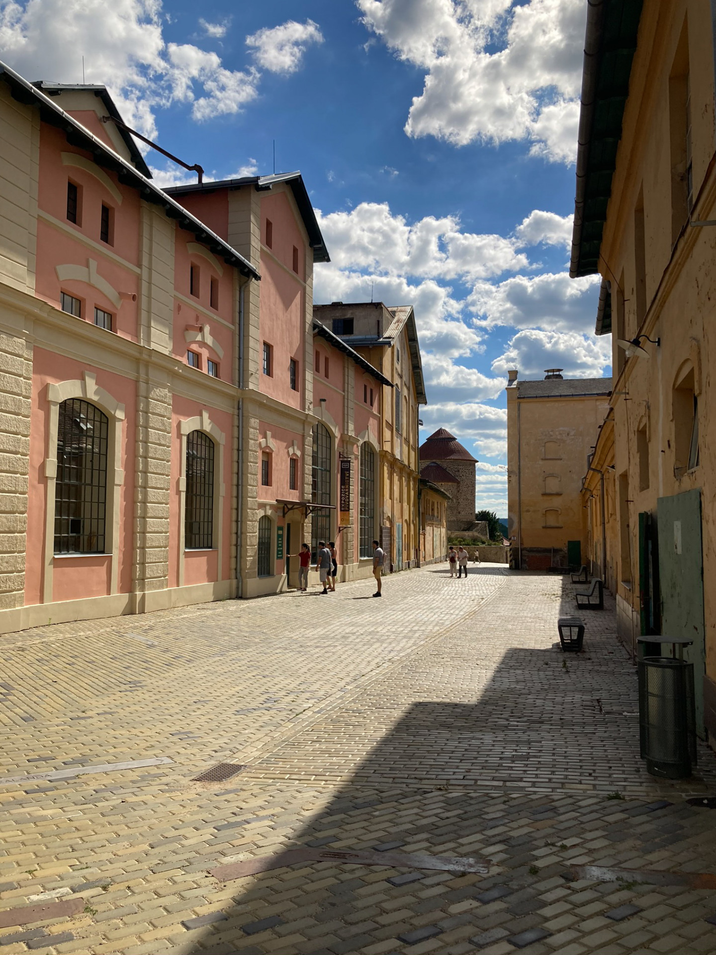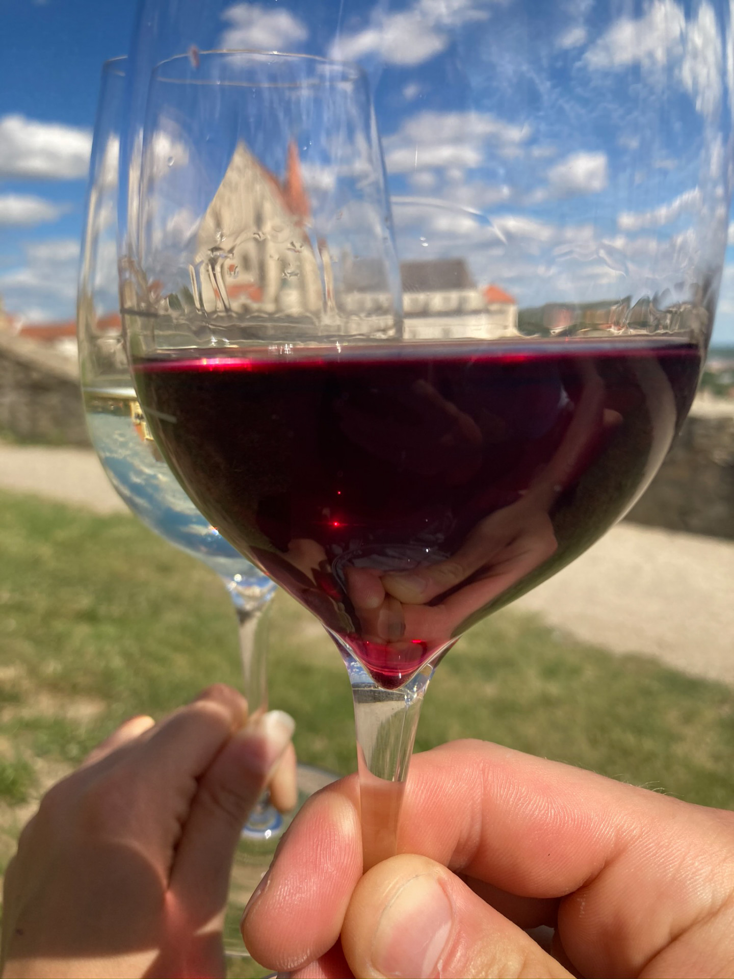 Hlad nakonec zažehnáme (nicméně doporučit dál nemůžeme) a máme před sebou další realizaci, která spojuje architekturu i víno - novou Enotéku lokálních vín od studia Chybík a Krištof, umístěnou v zrekonstruovaném pivovaru (ta ironie). Celý systém obsluhy je automatizovaný, kdy si na zakoupenou kartu sami vybíráte a natáčíte víno – díky tomu se taky prostorem můžete volně pohybovat a celý si ho prohlédnout. Do velké haly je vestavěné vnitřní prostředí tak, že vzniká důmyslný systém soukromých zákoutí a průhledů – a to jak do samotného interiéru, tak ven. Vyplatí se prozkoumat, co každé okno rámuje z okolní scenérie. My navíc oceňujeme, že se se skleničkou můžete jít klidně projít i ven na hradby a pak se zase vrátit pro další deci. Stíháme tak (se skleničkami schovanými v tašce) i návštevu rotundy Sv. Kateřiny, kde si za příznivých klimatických podmínek můžete prohlédnout zachovalé románské fresky.