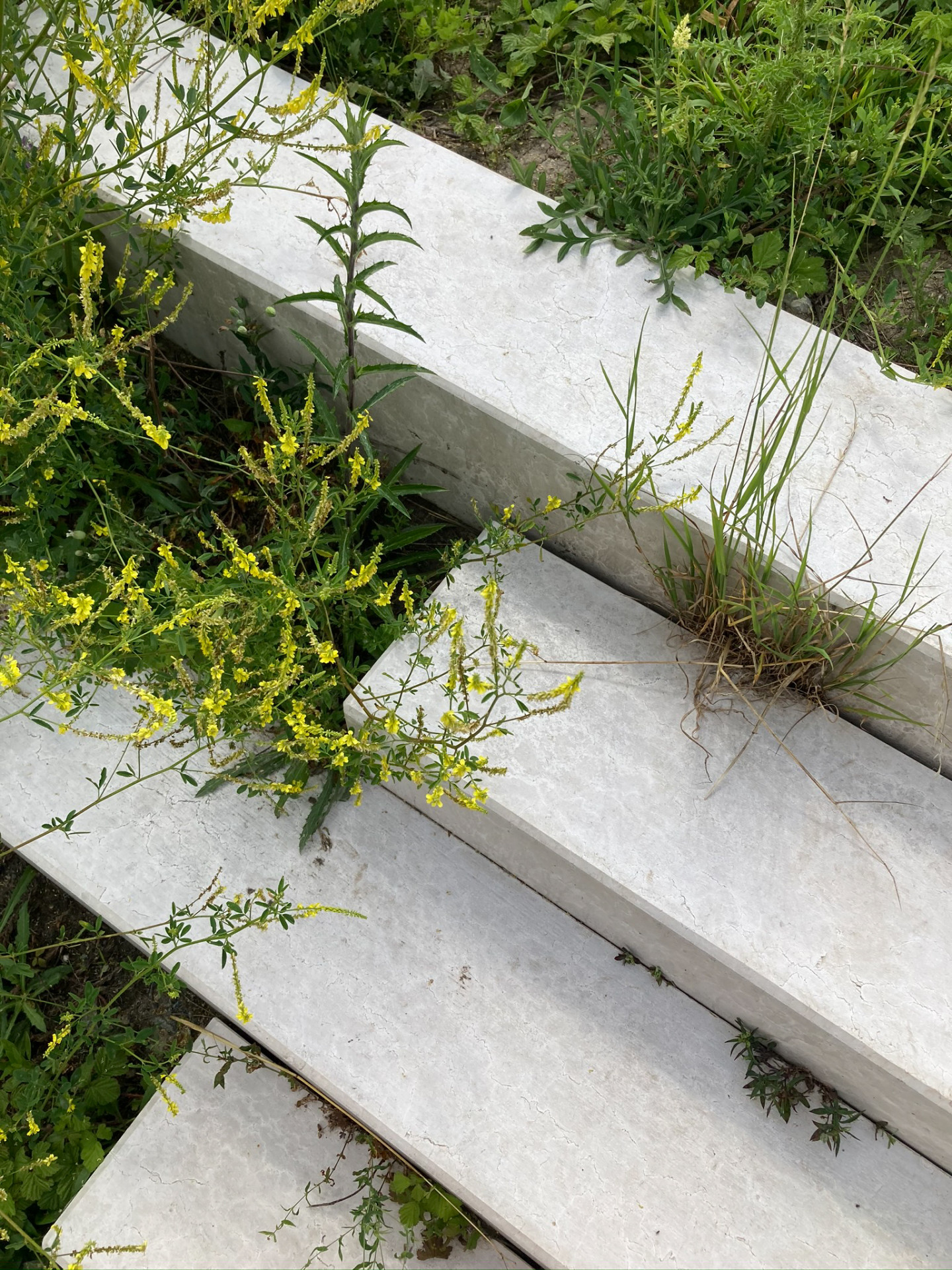 Začínáme obhlídkou Kaple Cestou u Dolních Dunajovic. Po tom všem betonu nám připadá odbočení na cestu mezi kukuřicí a vinicí jako procházka rajskou zahradou. Jedeme, kam to jde, a dál pokračujeme po svých. Až k patě Liščího vrchu – kopečku, na kterém bývala do dob Josefa II. kaple Sv. Rocha. Díky návrhu Vojtěcha Koláře na VUT v Brně tu už pár let stojí její soudobá připomínka. Tedy, spíše připomínky, roztroušené jako fragmenty podél cestičky vedoucí na vrchol, k pozůstatku kříže zasaženého bleskem (a který snad bude v budoucnu doplněn v podobném duchu). Jednoduché bílé vápencové bloky se v krajině důstojně vyjímají a jsou pěknou ukázkou, jak mohou drobné zásahy pomoci obnovit nebo pozvednout krásu a identitu místa. Mimochodem, vápenec je lokální (a ještě se s ním setkáme).