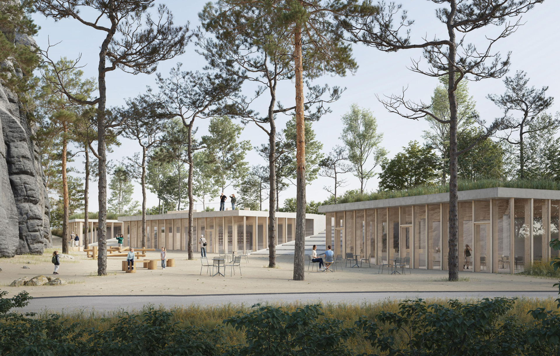 Autoři nechtěli konkurovat skalním útvarům a objekty restaurace, návštěvnického centra a prodejnu suvenýrů vložili do terénních zlomů mezi první pískovcové věže u vstupu do skalního města.