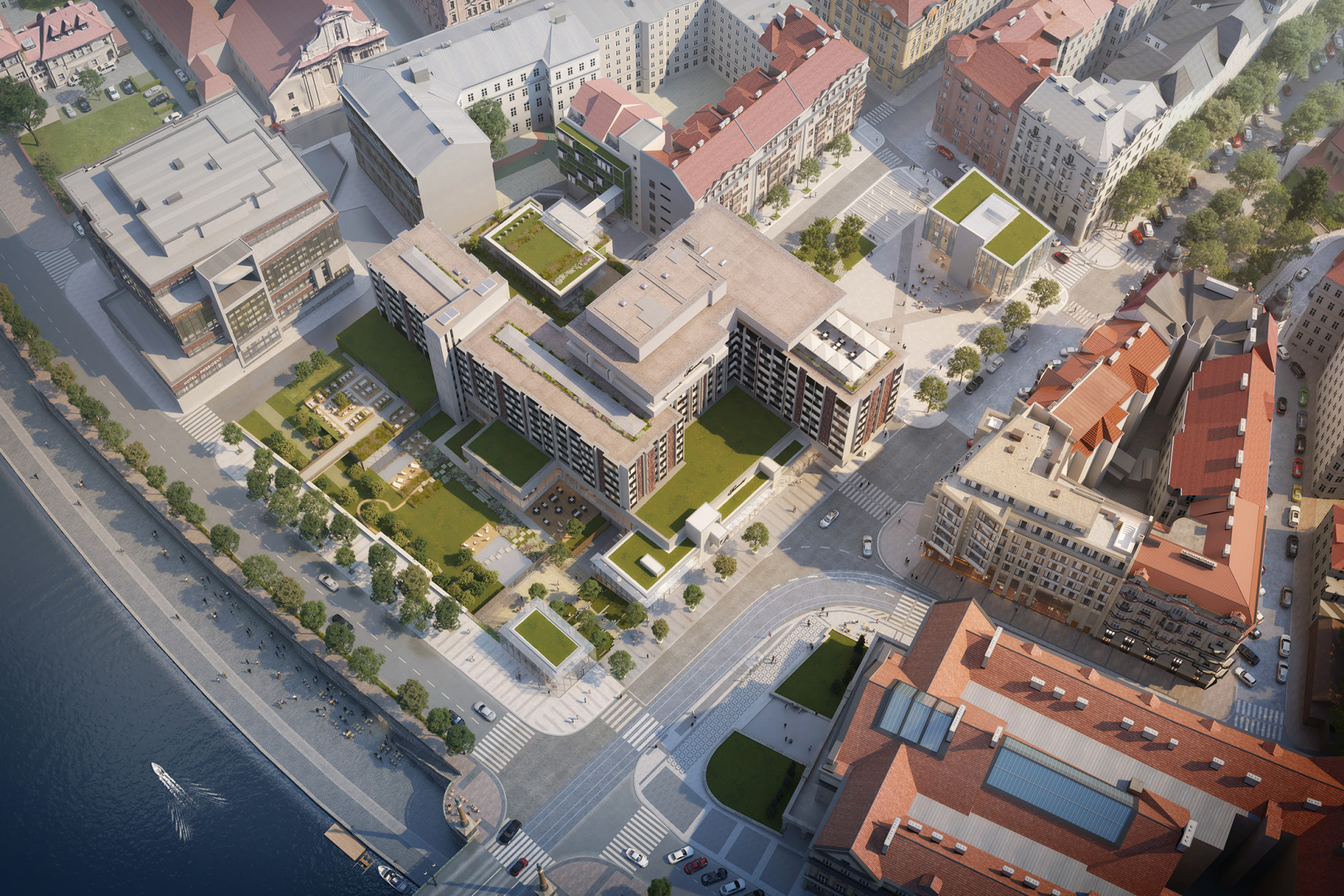 Přesněji: memorandum slibuje architektonicko-urbanistickou soutěž s cílem „zlepšit průchodnost prostoru“ a „odstranit urbanistické nedostatky“ a uplatnit „prvky modrozelené infrastruktury“. A jen tak mimochodem také pořízení změny územního plánu a umístění nové budovy.
